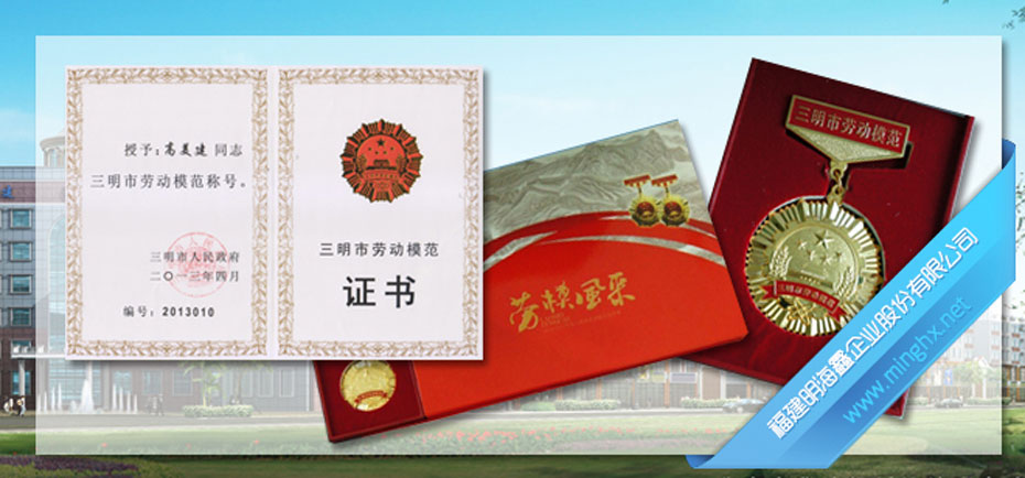 2013年4月27日,三明市人民政府召開2010至2012年度三明市勞動模范表彰大會,會上福建明海鑫企業(yè)股份有限公司董事長高美建等121名同志被三明市人民政府授予:三明市勞動模范稱號。