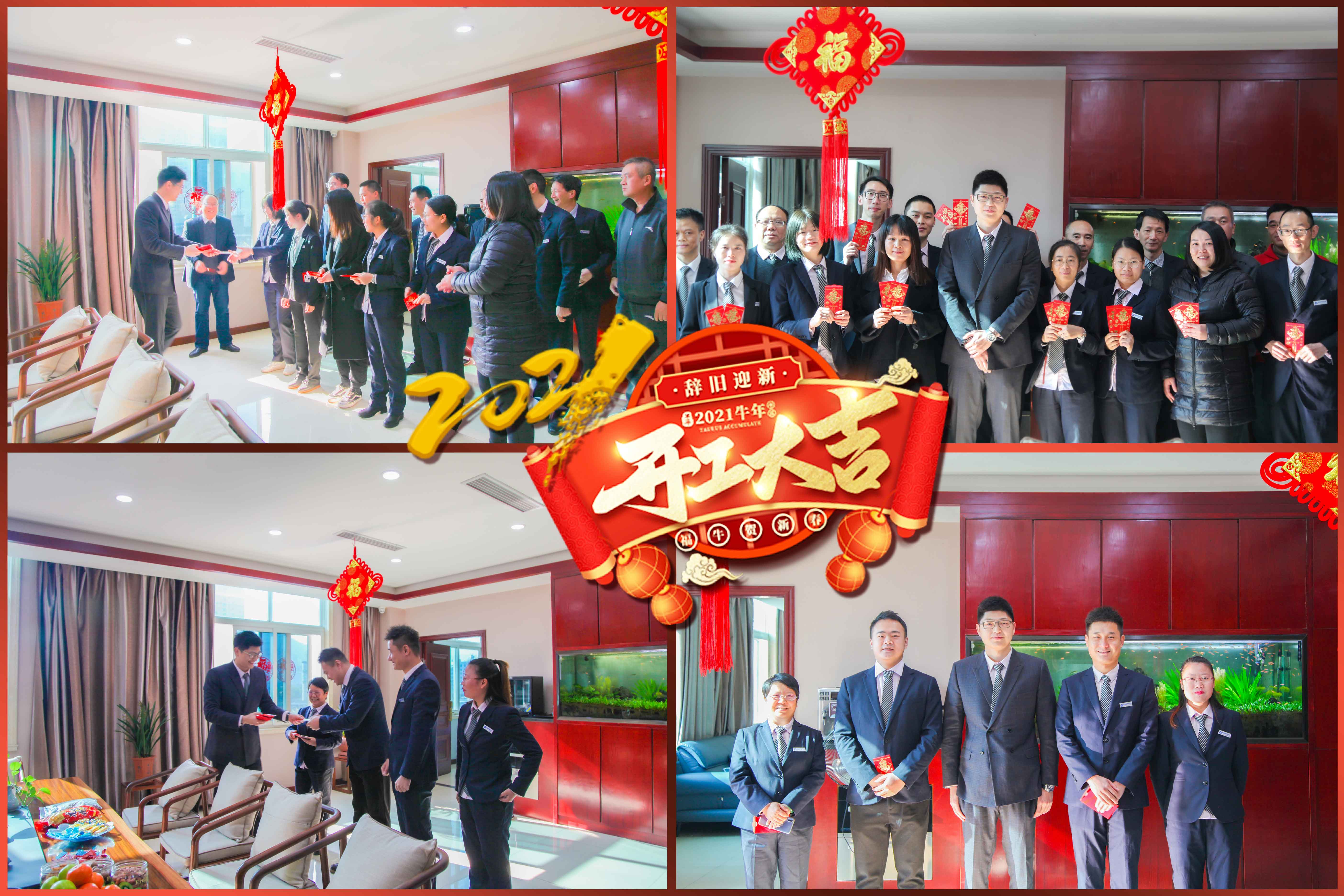 各部門領導也帶領員工們到執行總經理辦公室拜新年、賀開工,并恭祝公司在新的一年里生意興隆,牛年大吉!