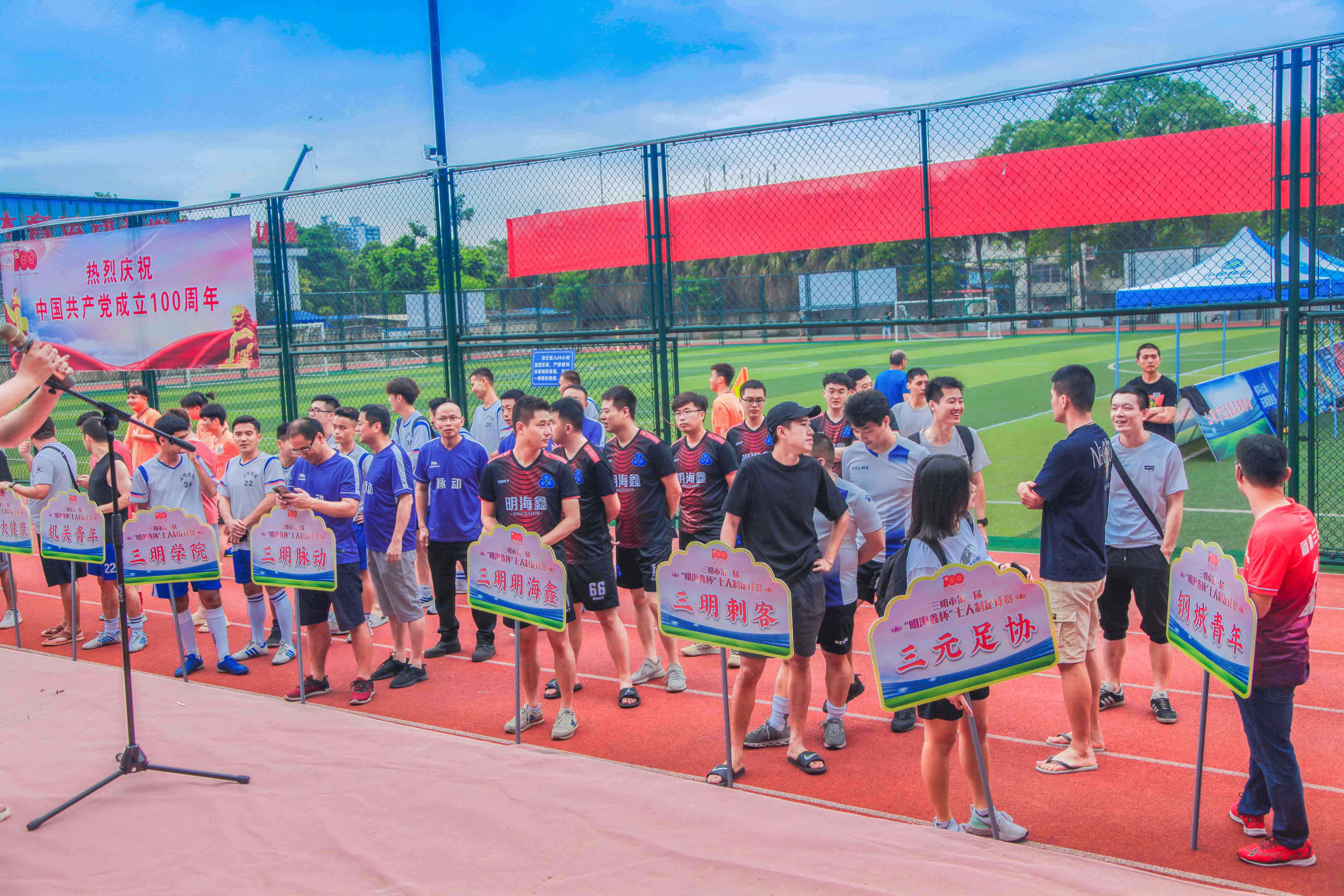 6月26日上午,為獻(xiàn)禮建黨100年誕辰,三明市第一屆“明海鑫杯”七人制足球賽在三明市三化足球場打響。本次賽事由三明市三元區(qū)足球協(xié)會主辦、三明市三元區(qū)白沙街道協(xié)辦、我司(福建明海鑫企業(yè)股份有限公司)冠名、指導(dǎo)單位為三明市三元區(qū)文體和旅游局。于6月26日上午8:20分開幕,共有14支隊伍參加比賽,近250余名隊員進(jìn)行了30個場次的激烈角逐,爭奪冠軍榮耀。